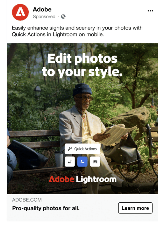 GOAL: Drive awareness and demand progression for Adobe Lightroom’s mobile app with a three-pronged campaign including landing pages, paid social, and emails.